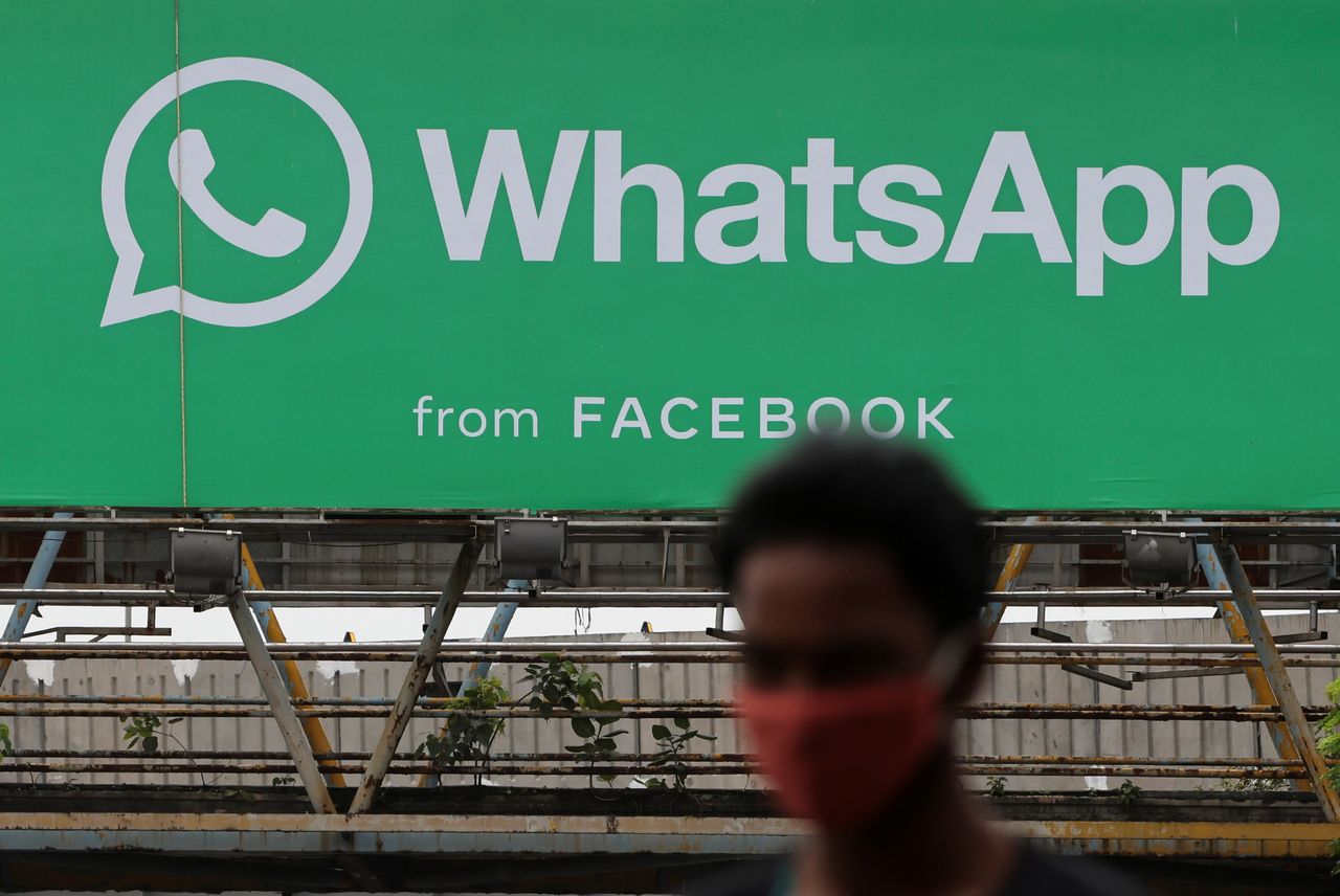 A man walks past a hoarding of the WhatsApp application installed at a skywalk in Mumbai, India, August 26, 2021. REUTERS/Francis Mascarenhas/Files