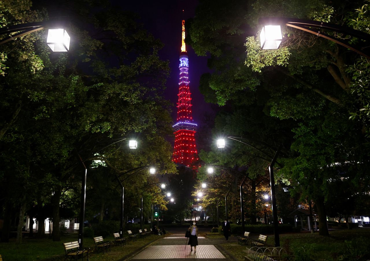 FILE PHOTO: Tokyo Tower is illuminated in the colours of the Los Angeles Angels, after their player Shohei Ohtani won the Most Valuable Player (MVP) award for Major League Baseball's American League, in Tokyo, Japan November 19, 2021. REUTERS/Issei Kato