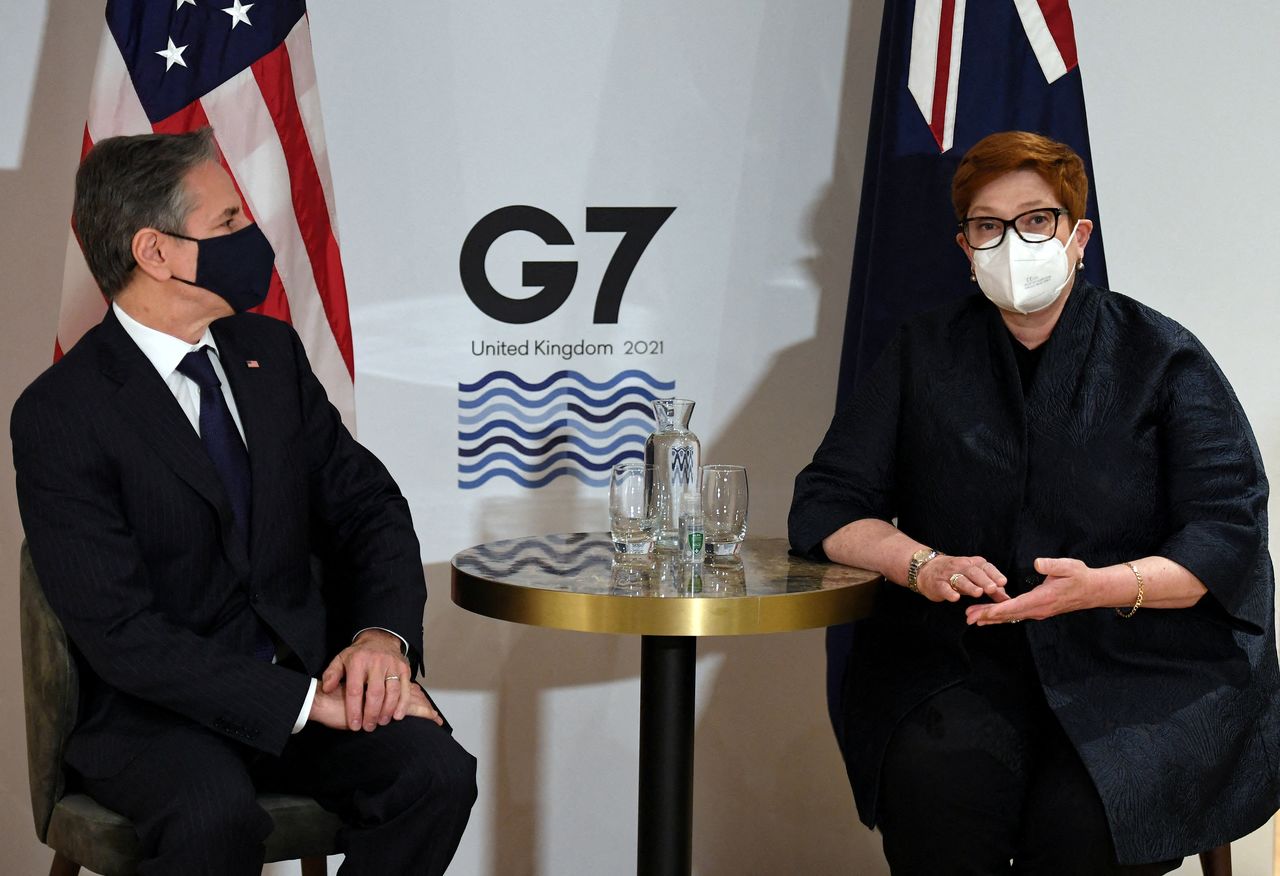U.S. Secretary of State Antony Blinken and Australia's Foreign Minister Marise Payne hold a bilateral meeting on the first day of the G7 foreign ministers summit in Liverpool, Britain December 11, 2021. Olivier Douliery/Pool via REUTERS