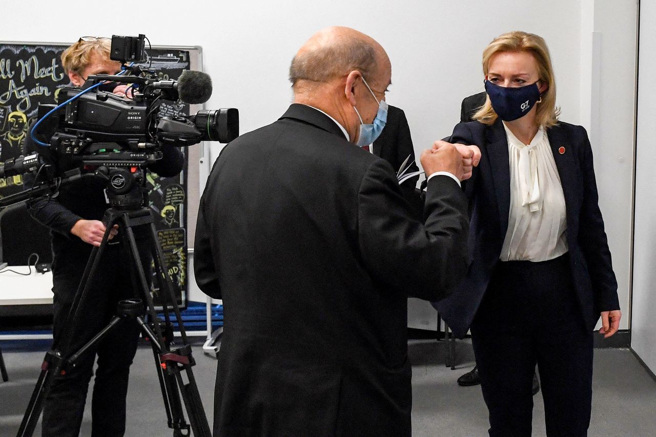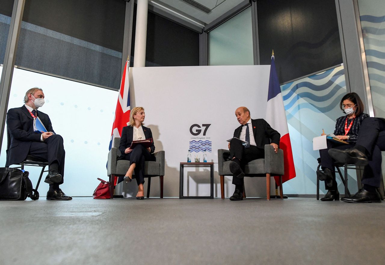 British Foreign Secretary Liz Truss holds a bilateral meeting with France's Minister for Europe and Foreign Affairs Jean-Yves Le Drian on the first day of the G7 foreign ministers summit in Liverpool, Britain December 11, 2021. Paul Ellis/Pool via REUTERS