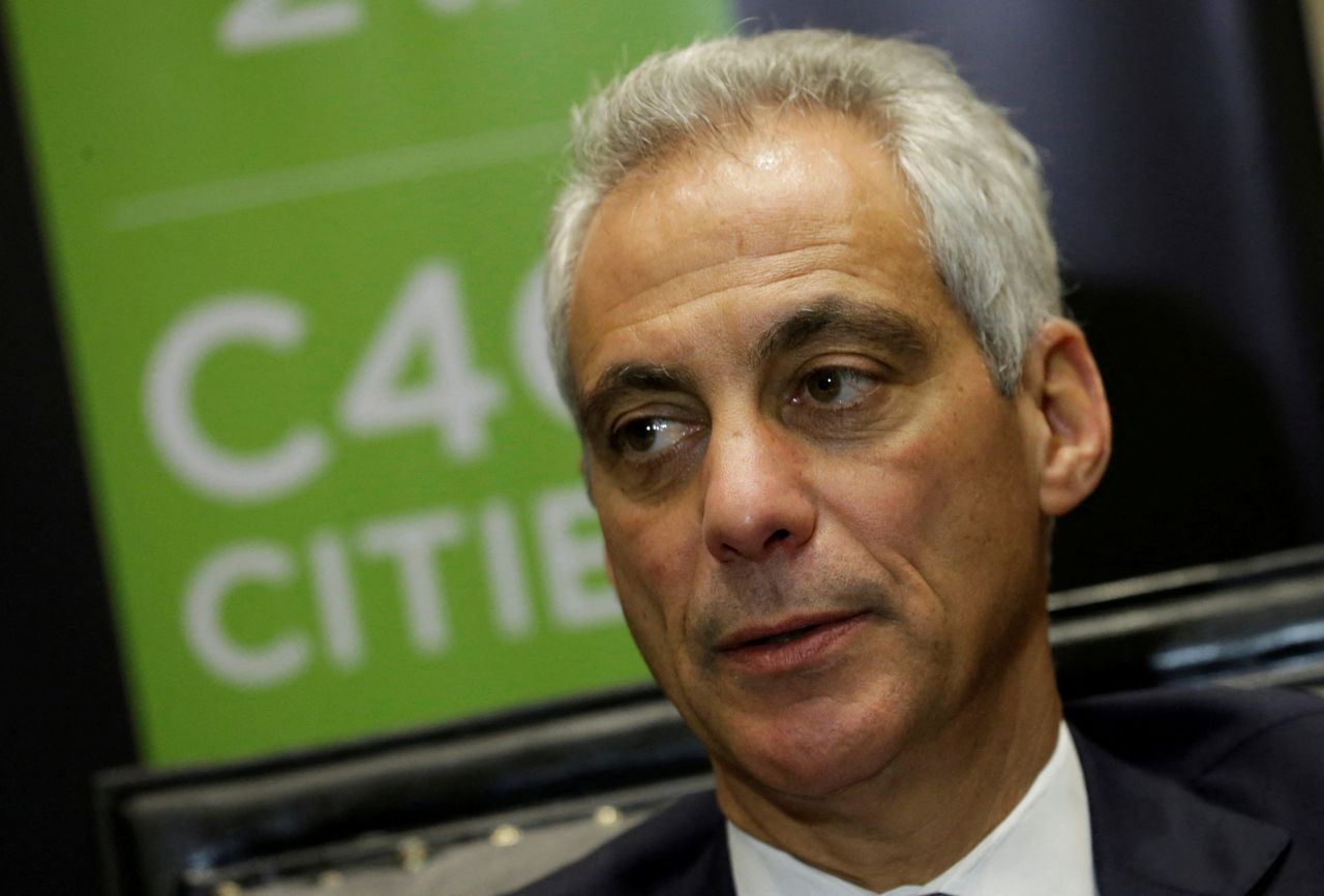 FILE PHOTO: Rahm Emanuel, the former Chicago mayor who has been confirmed by the U.S. Senate as President Joe Biden's nominee to be ambassador to Japan, speaks during an interview with Reuters after taking part at the C40 Mayors Summit at a hotel in Mexico City, Mexico December 1, 2016. REUTERS/Henry Romero