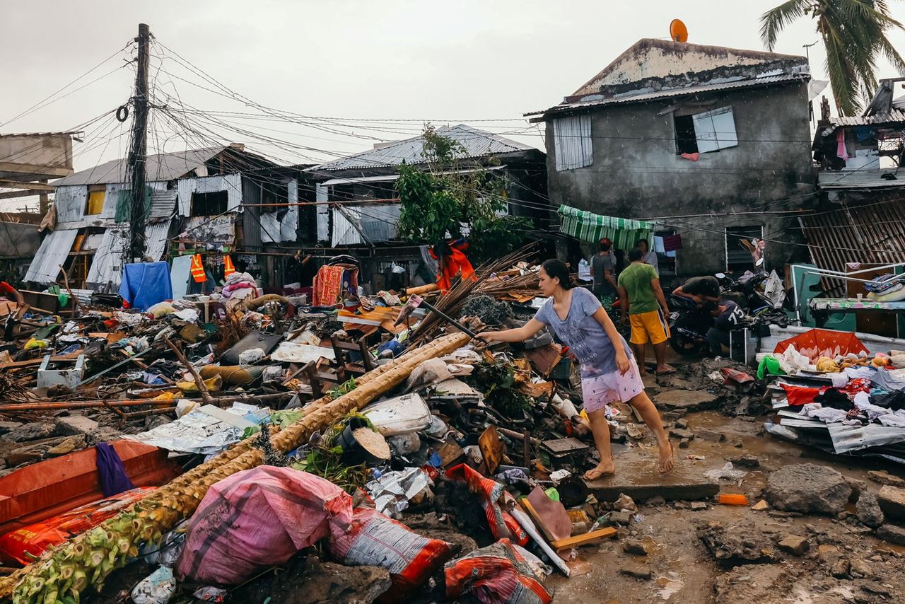 A woman tends to her damaged properties following typhoon Rai, in Surigao City, Surigao del Norte, Philippines, December 19, 2021. Picture taken December 19, 2021. Jilson Tiu/Greenpeace/Handout via REUTERS THIS IMAGE HAS BEEN SUPPLIED BY A THIRD PARTY. NO RESALE. NO ARCHIVE. MANDATORY CREDIT