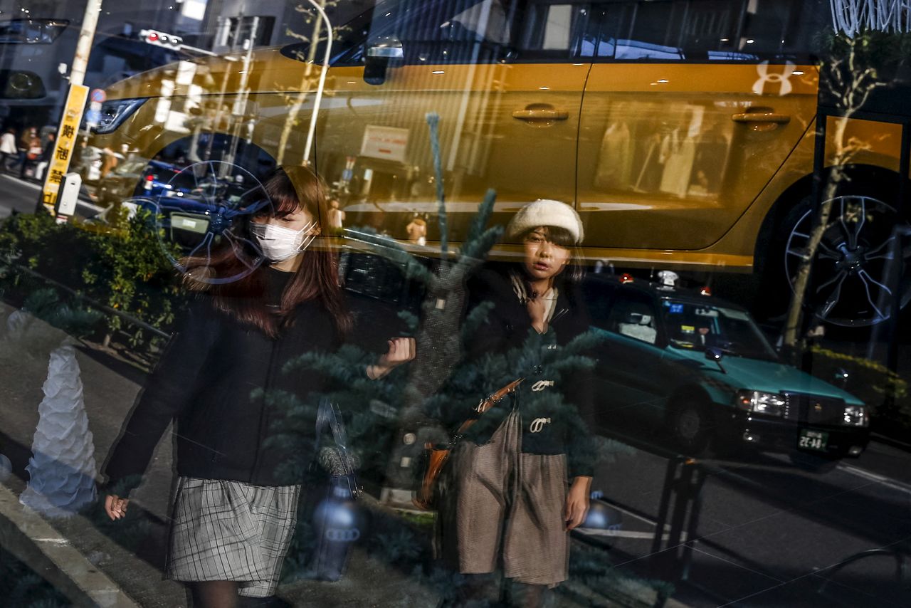 FILE PHOTO: Women walk in a shopping district in Tokyo, Japan, December 25, 2015. REUTERS/Thomas Peter