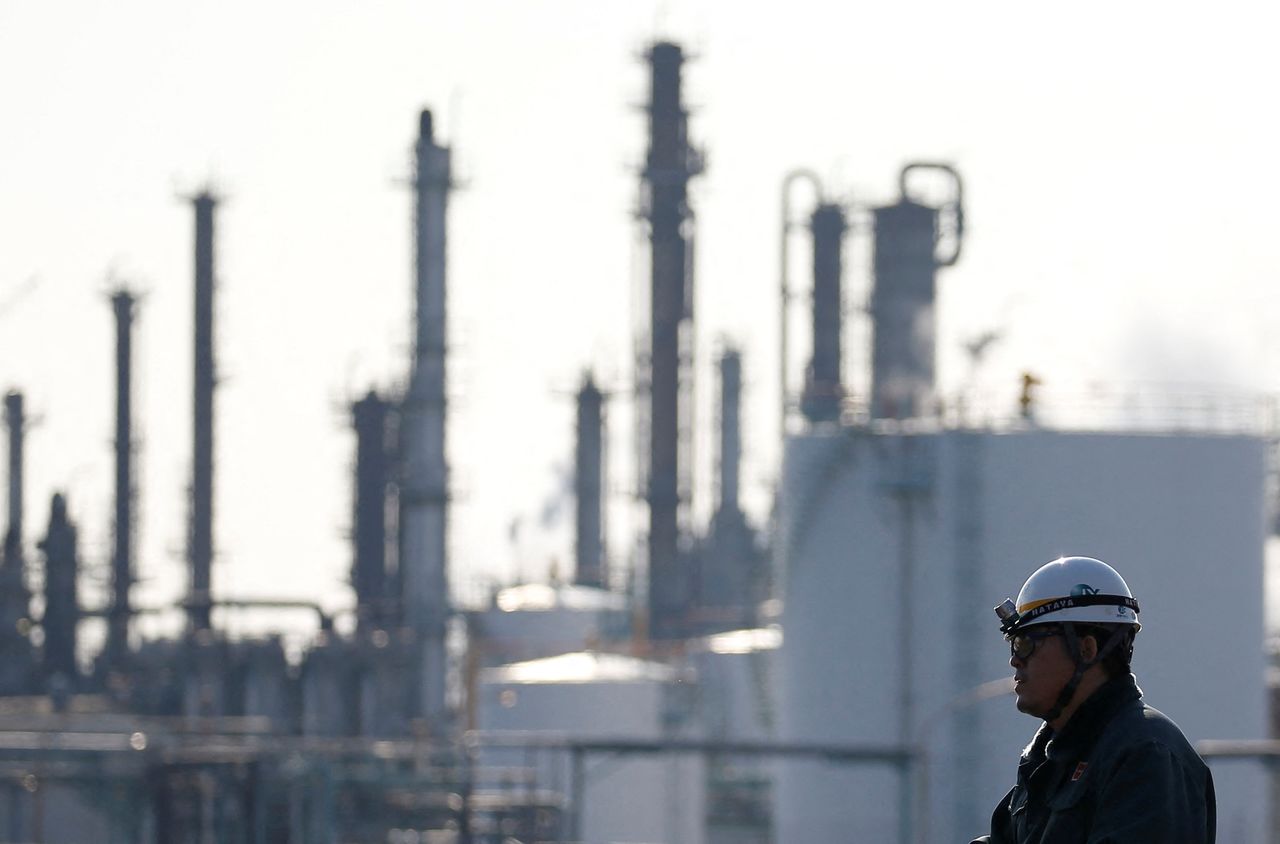 FILE PHOTO: A worker walks near a factory at the Keihin industrial zone in Kawasaki, Japan February 28, 2017. REUTERS/Issei Kato