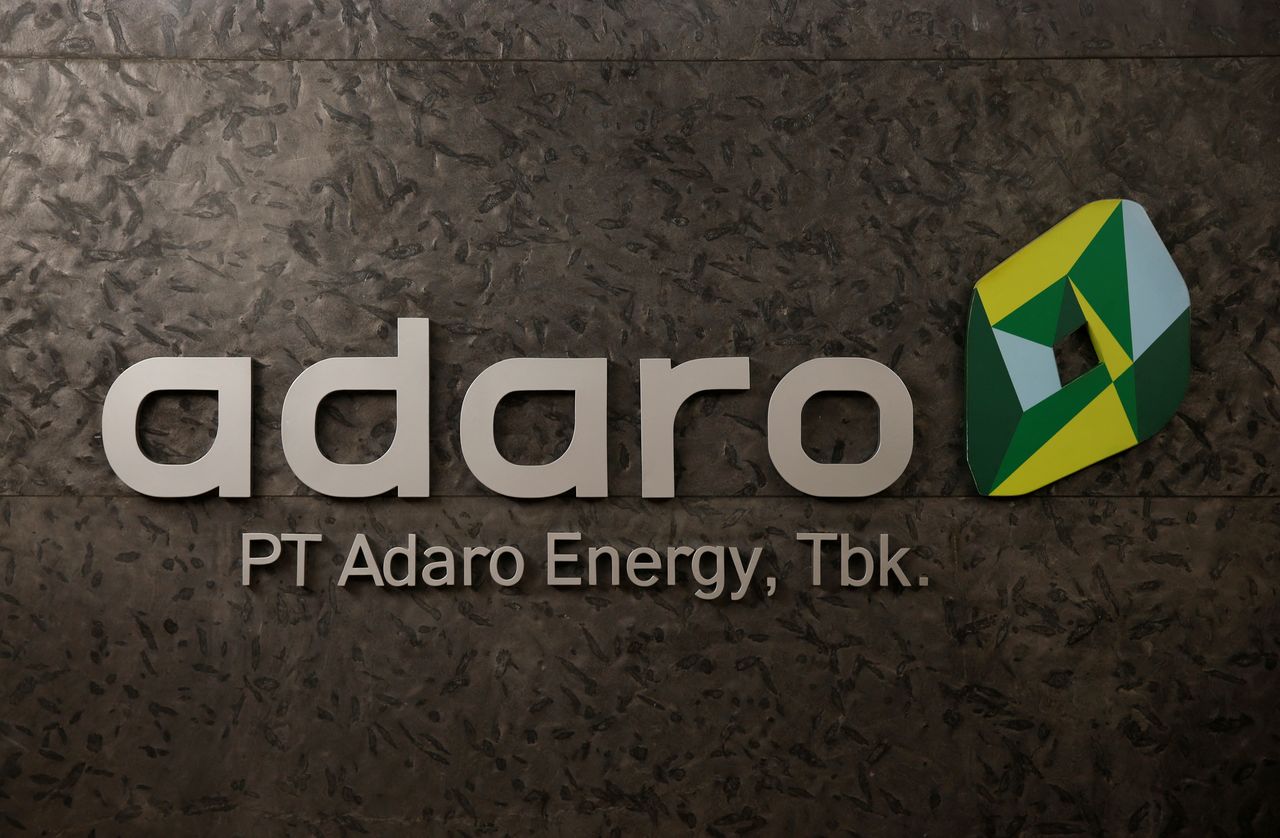 FILE PHOTO: The logo of PT Adaro Energy as seen at PT Adaro Energy headquarters in Jakarta, Indonesia, October 20, 2017. REUTERS/Beawiharta