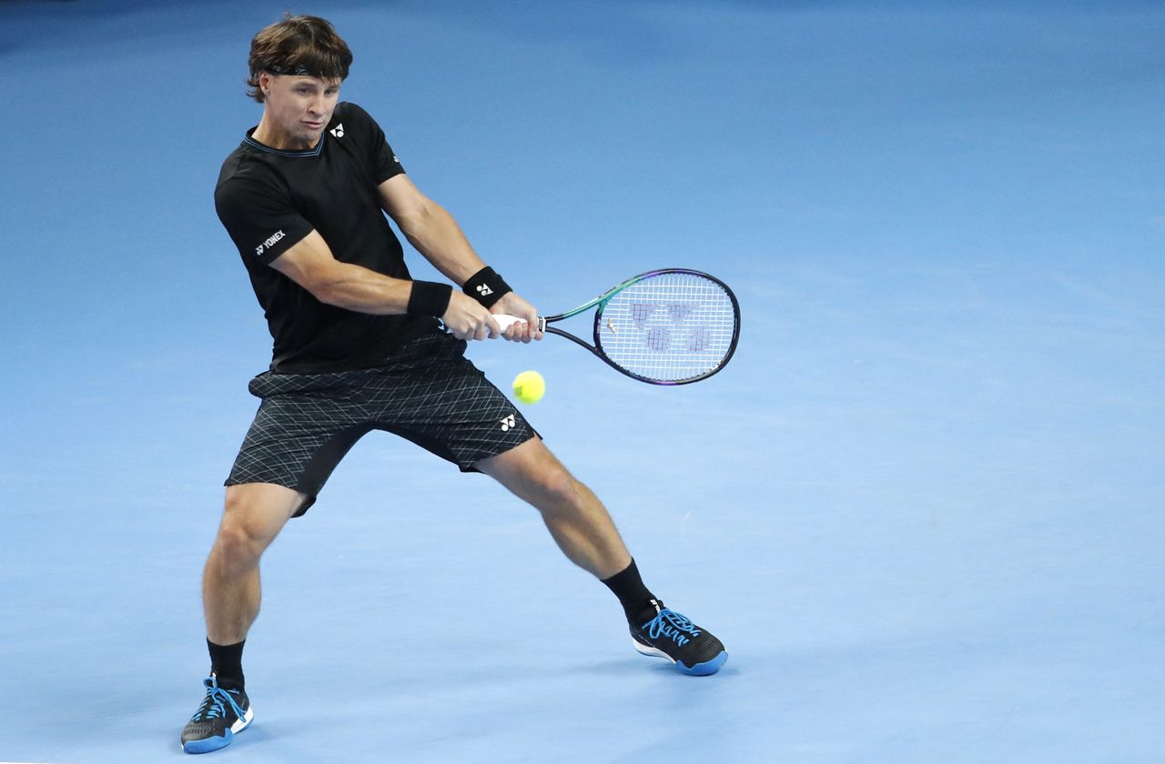 FILE PHOTO: Tennis - ATP 250 - VTB Kremlin Cup - Luzhniki Olympic Complex, Moscow, Russia - October 23, 2021 Lithuania's Ricardas Berankis in action during his semi final match against Croatia's Marin Cilic REUTERS/Evgenia Novozhenina