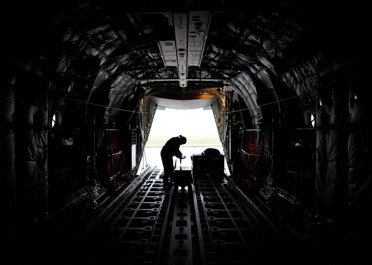 FILE PHOTO: A U.S. soldier wearing a protective face mask is seen inside a C-130 transport plane during a military drill amid the coronavirus disease (COVID-19) outbreak, at Yokota U.S. Air Force Base in Fussa, on the outskirts of Tokyo, Japan May 21, 2020. REUTERS/Issei Kato