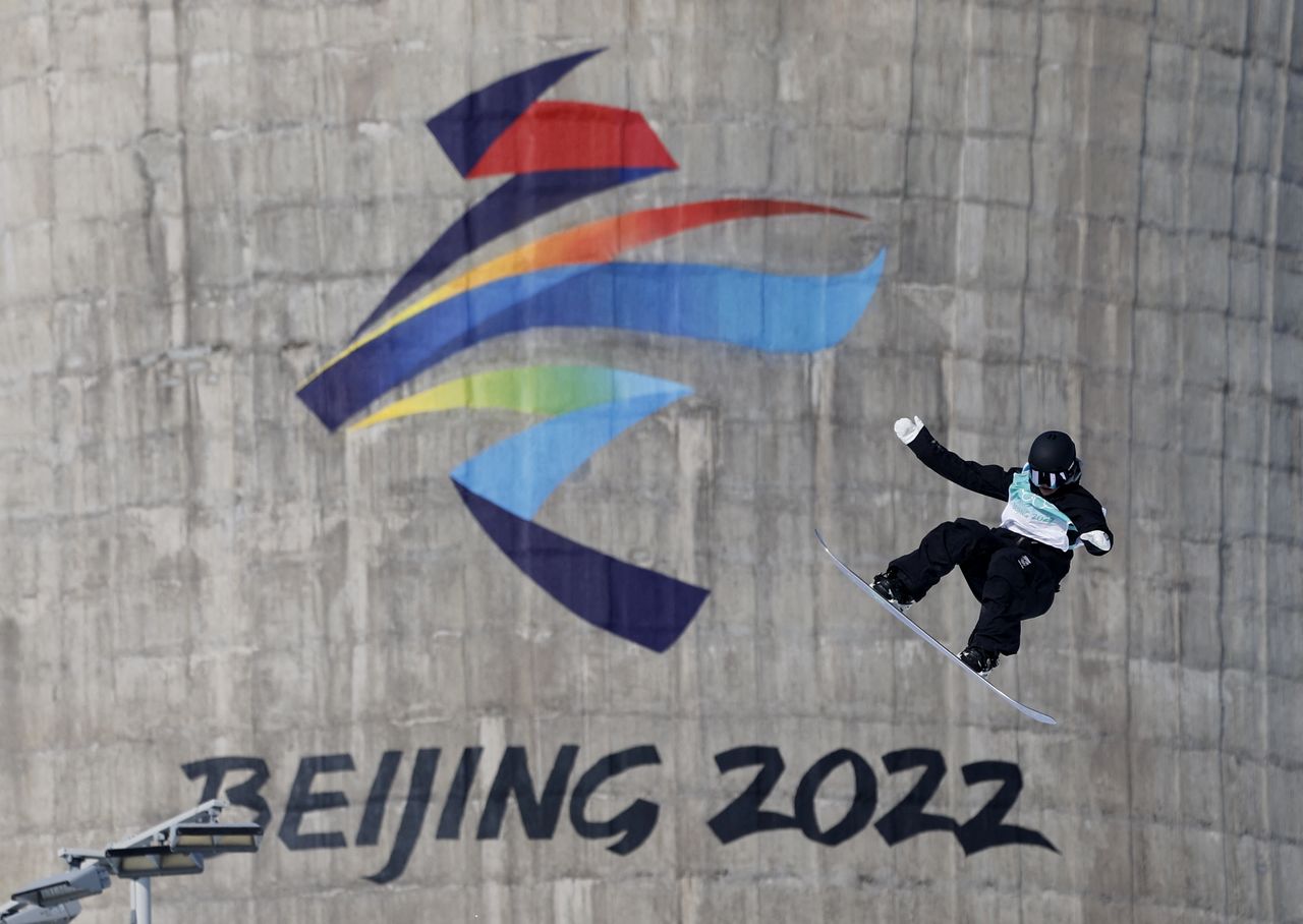 2022 Beijing Olympics - Snowboard - Women's Snowboard Big Air Final - Run 3 - Big Air Shougang, Beijing, China - February 15, 2022. Zoi Sadowski Synnott of New Zealand in action. REUTERS/Tyrone Siu