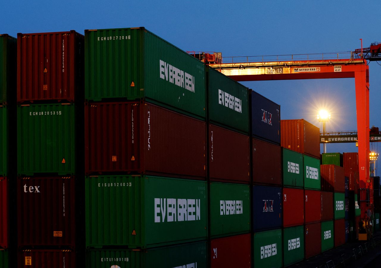 Stacked containers are seen at an industrial port in Tokyo, Japan, February 17, 2022. REUTERS/Kim Kyung-Hoon
