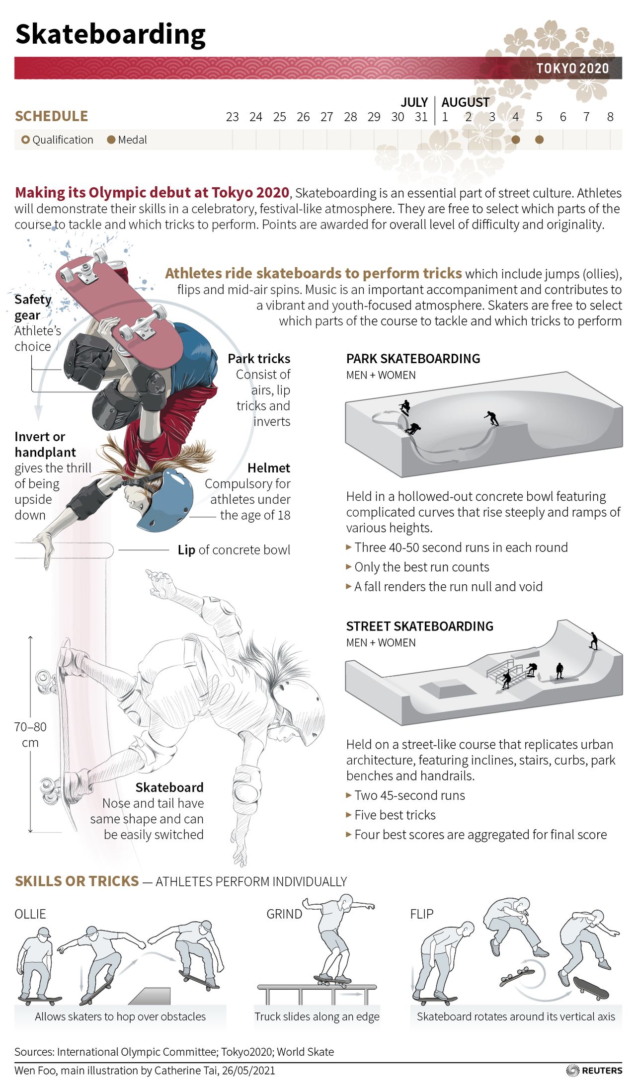 Tokyo 2020 Games Overview Explaining the Games: Skateboarding Newsfrom Japan Sports Tokyo 2020 Jul 23, 2021 English 日本語 简体字 繁體字 Français Español العربية Русский Tokyo 2020 Reuters Tokyo 2020 Games Overview Skateboarding
