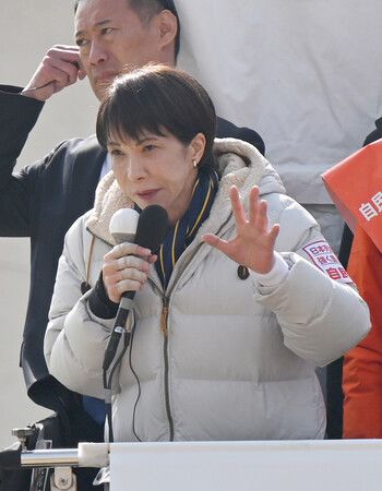 Prime Minister Sanae Takaichi gave a street speech in Kurashiki, Okayama Prefecture, on Wednesday, seeking to firm up support for her ruling Liberal Democratic Party in the prefecture's No. 4 constituency, which the party sees as a fierce battlefield between it and the Centrist Reform Alliance, a newly established party, in the election.