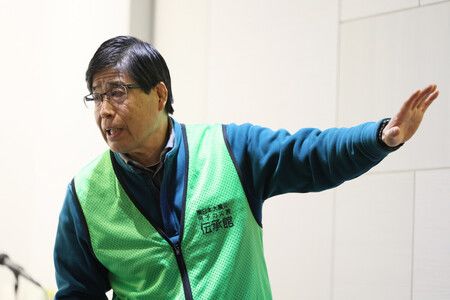 His presentation addresses a weighty subject, yet he moves through it with energy, displaying photographs and mementos as he speaks. "Imagine it: The shaking is so intense that you can't stay on your feet unless you cling to a pillar," he says. Even the children in the audience remain engaged, according to Izumita.