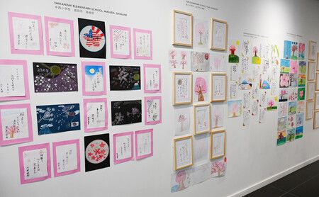 The exhibition displays more than 300 works by the two countries' students, including a haiku poem about sending cherry blossoms to the United States by a fifth grader of Yuni, Hokkaido, and a drawing of cherry blossoms in Washington by a U.S. student.