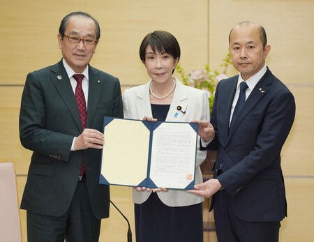 Meeting with Takaichi at the prime minister's office in Tokyo, Hiroshima Mayor Kazumi Matsui and Nagasaki Mayor Shiro Suzuki called for Japan's participation in the conference to review the treaty as an observer. Japan has not signed the treaty.