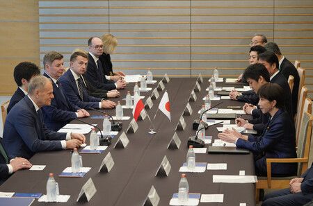 Tokyo, April 15 (Jiji Press)--Japanese Prime Minister Sanae Takaichi and her visiting Polish counterpart, Donald Tusk, agreed Wednesday to work together to achieve peace in Ukraine, which has been invaded by Russia.