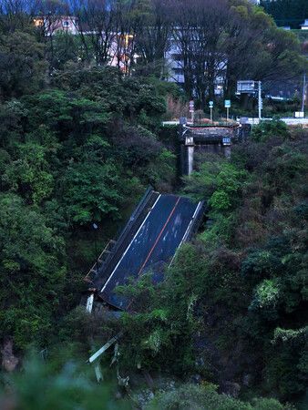 The son, Hikaru, a 22-year-old university student then, had delivered drinking water to a friend affected by the first shock two days before. On his way home, his car was caught in a landslide near the bridge in the village of Minamiaso.