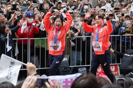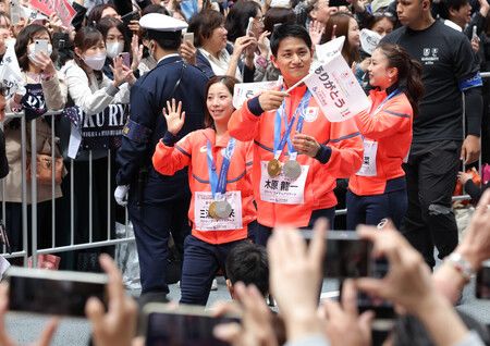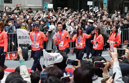 Tokyo, April 25 (Jiji Press)--Japanese athletes who competed in the 2026 Milan-Cortina Winter Olympics and Paralympics paraded through central Tokyo on Saturday, thanking the public for their support during the quadrennial event in Italy earlier this year.