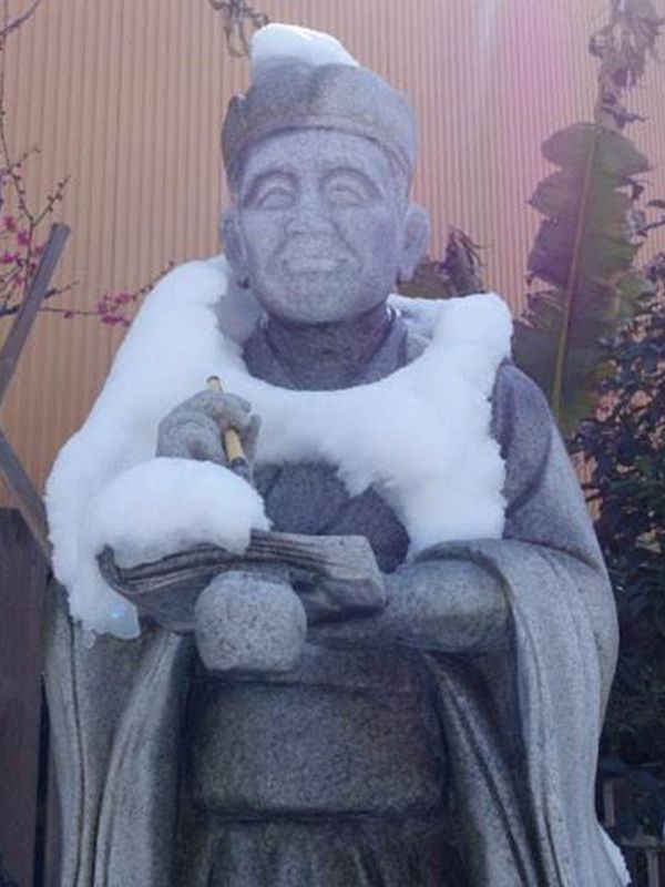 Bashō working on a winter-themed haiku.