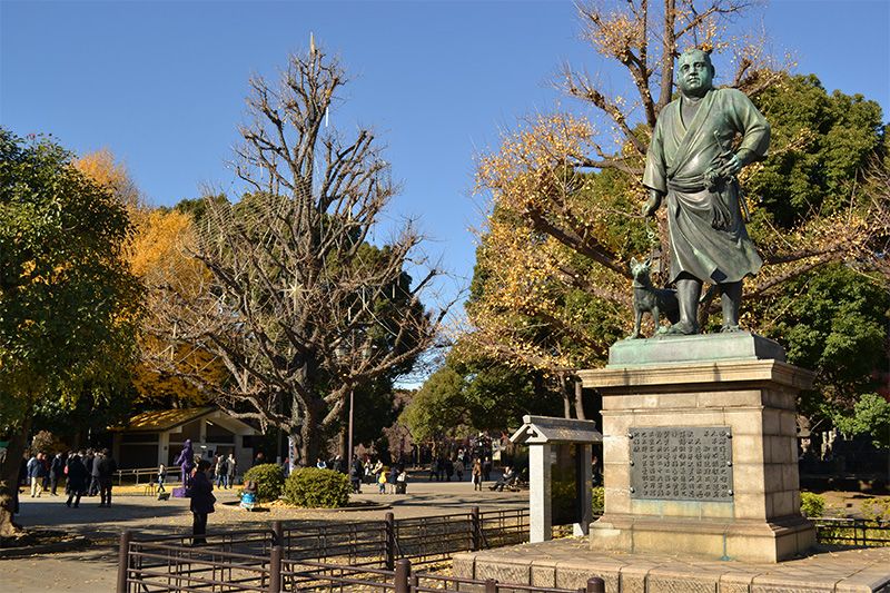 A historical center of Tokyo, Ueno is where travelers from the north would once arrive. Today it is most known for Ueno Park, which includes museums like the Tokyo National Museum and the National Museum of Western Art within its limits. In spring, the park’s cherry blossom trees also draw in crowds. A short way to the east stands Tokyo Skytree, the world’s second-tallest structure and another symbol of the Japanese capital, and the wildly popular tourist destination of Asakusa. The picture shows a statue of famous samurai Saigō Takamori and his dog.