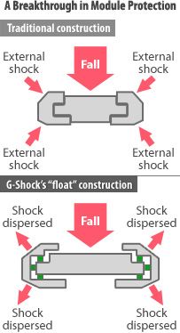 It was the sight of a child playing with a rubber ball that gave him the breakthrough hint he needed. He saw the possibility of encasing the module—the internal case housing the functional parts of the watch—in a cushion like the rubber ball, allowing it to float in a substance that would absorb the impact of external blows. Until then he and his team had focused on protecting the module with rigid armor, but now he had a new solution: the module would be supported at a limited number of points, suspended in an empty space in the watch housing. This “float” construction would become the fundamental structure of G-Shock watches for decades to come.