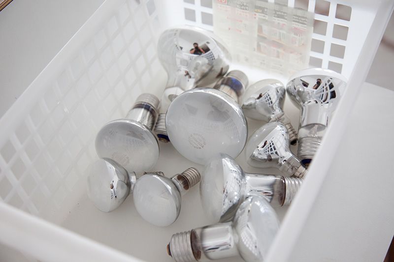 1 Segawa’s first step was to cull unnecessary light bulbs. Where she had previously used four bulbs in the entrance hall to her apartment, for example, she cut down to just one—and found that there was still plenty of light. She started removing unnecessary light bulbs from around the apartment, and soon harvested 17 surplus bulbs. Eventually, Segawa plans to replace all her bulbs with LED lighting, but her stock shows no sign of running out any time soon.