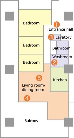 Let’s have a look at some of the concrete measures Segawa took to trim her monthly bills by 50%. The plan below shows the layout of her apartment.