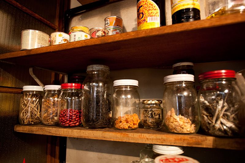 The whole atmosphere evokes a past time in Japan when people made up for the lack of material wealth by using their own ingenuity to spice up their lives. Far from suffering from the lack of modern conveniences, Uotsuka finds his way of life quite amenable. Indeed, he is quick to emphasize that he is not choosing a simple lifestyle out of some sort of stoicism. “I’m not doing as a sort of endurance test,” he explains with a laugh. “My view is that the best way to use things is to use them for a long time. This is my approach to food, too. So I buy lots of things when the prices are low and come up with ways to preserve the food for a long time, creating as little waste as possible. For me, living in this sort of way is a lot of fun.”