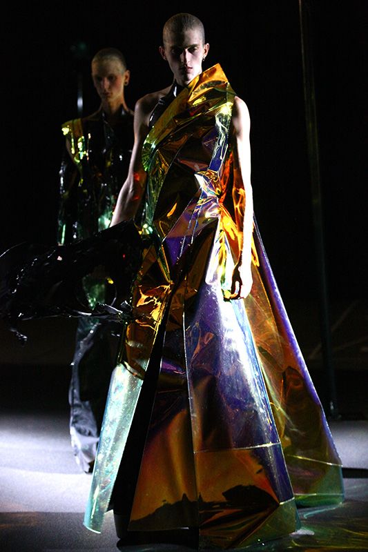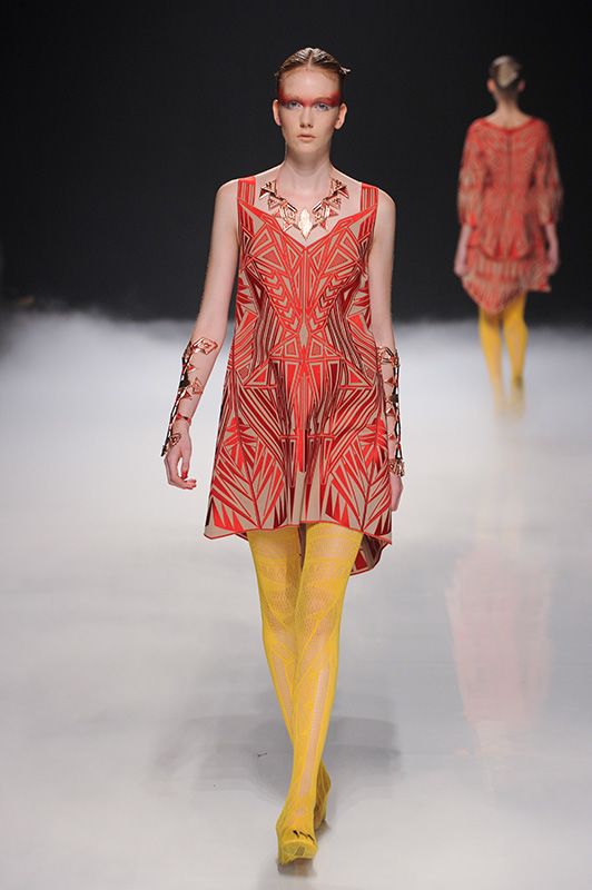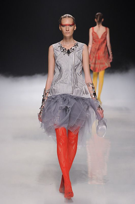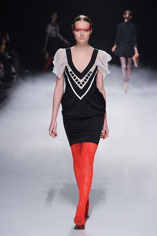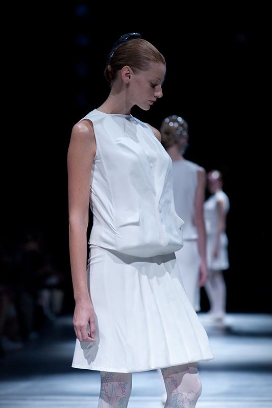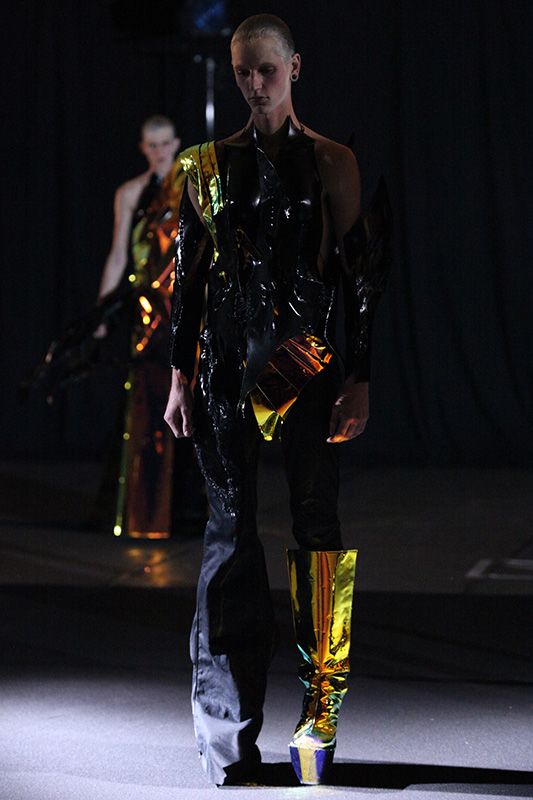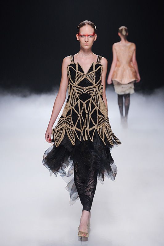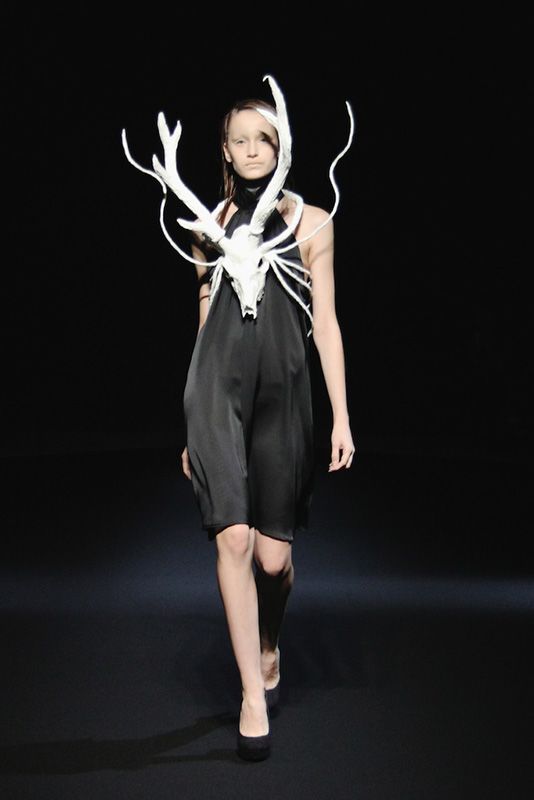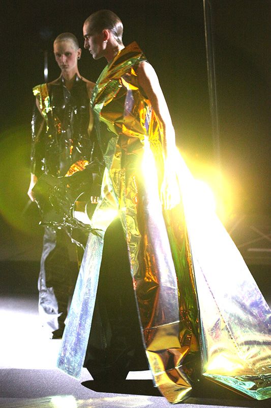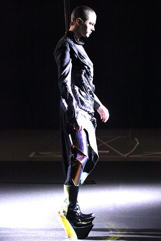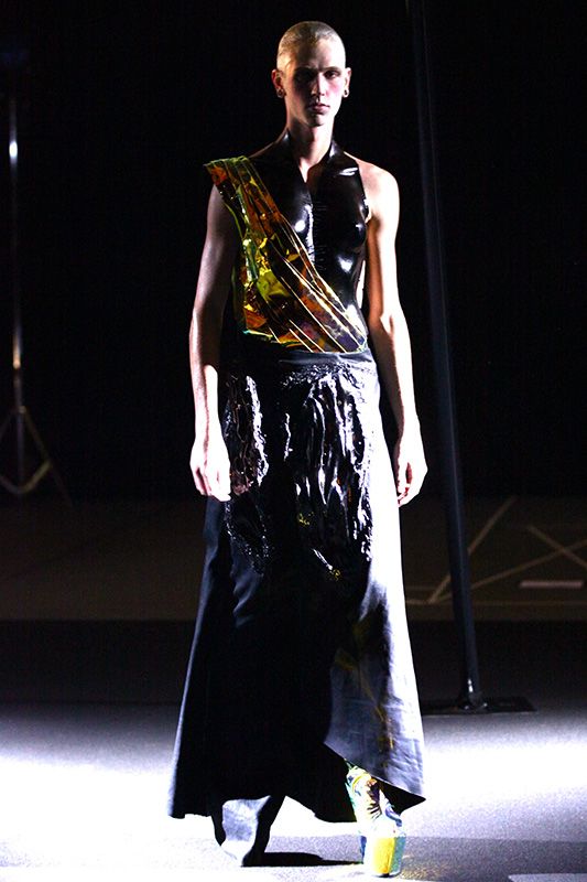 Born in 1985, Nakazato Yuima began learning how to make clothes on his own and enrolled in the fashion department of the Royal Academy of Fine Arts in Antwerp after graduating from high school. He has received several awards for his work, including an award at ITS#7. Nakazato launched his own brand after graduating in 2009 and continues to show his work mostly in Paris. He has designed original pieces for recording artists including Fergie of the Black Eyed Peas and Lady Gaga. Nakazato presented a menswear collection at his 2011 spring/summer show during Tokyo Fashion Week. For his spring/summer 2012 collection, he expresses a world view going beyond gender in an exhibition event and a photo collection. (Photos: 2011 spring/summer collection runway.)