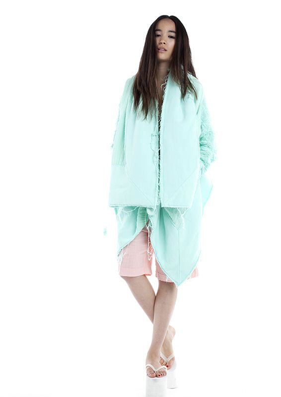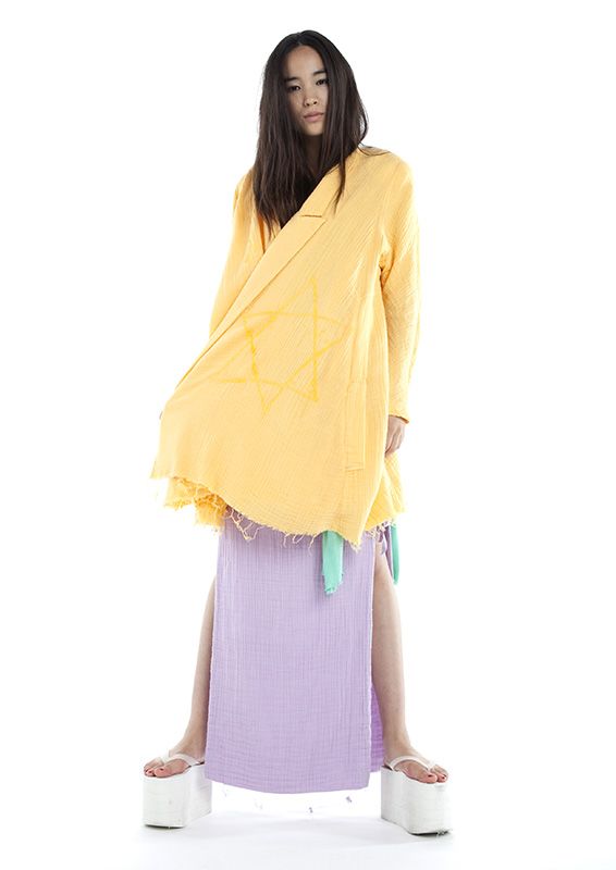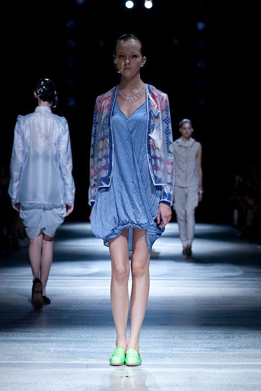 This brand is a collaboration between Sakabe Mikio (born in 1976), who graduated from the Royal Academy of Fine Arts in Antwerp at the top of his class, and Taiwanese designer Shueh Jen Fang. They launched the brand with an installation-style show for their 2007 autumn/winter Paris collection. From spring/summer 2008 they began showing in Paris and Tokyo. For autumn/winter 2011, they hosted a fashion and Akiba culture (Akiba is short for Akihabara) combined event, featuring a talked-about appearance on the runway by the J-pop girl group Dempagumi.inc. The theme of their 2012 spring/summer collection is Holy. In an about turn from last season, they present a relaxed and natural view of the world with pastel tones and frequent use of gauze fabrics.