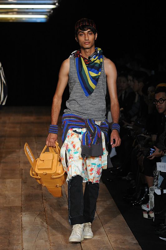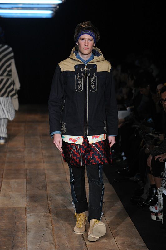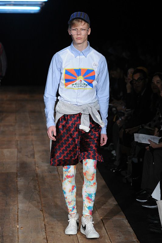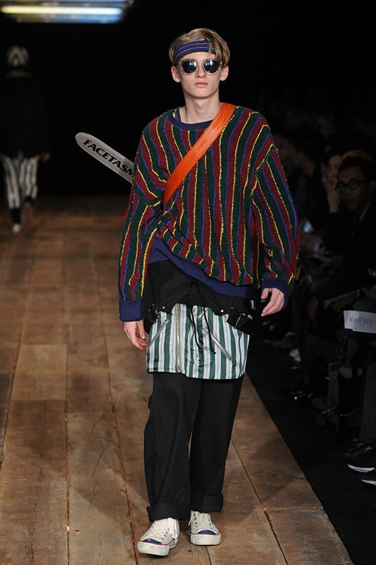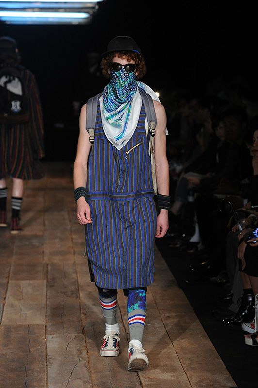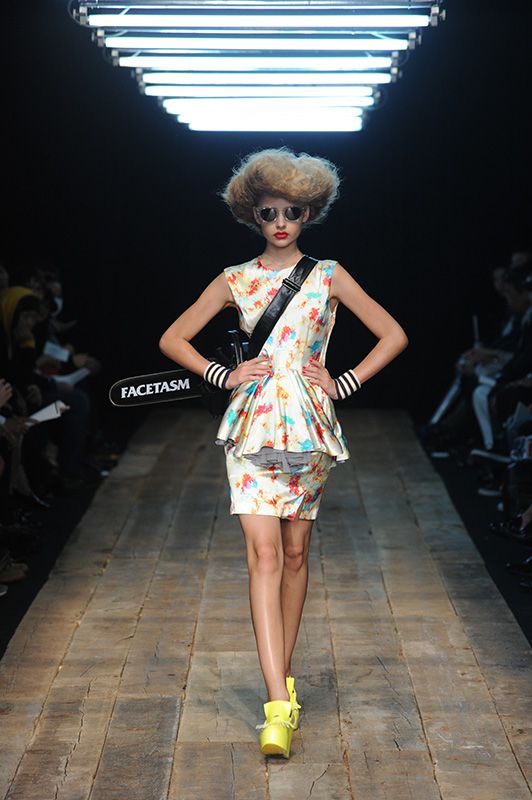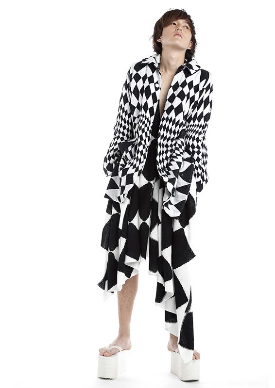 After graduating from Bunka Fashion College, Ochiai Hiromichi (born in 1977) worked at the textile company Guildwork while at the same time working as an assistant for NGAP (artists that work on everything from clothing to furniture and interiors) before launching his brand Facetasm in autumn/winter 2007. Prior to presenting his 2012 spring/summer collection in his first runway show at Versus Tokyo, an event on the last day of Tokyo Fashion Week, Ochiai had been introducing his collections with an exhibition-style event. The collection’s theme “To be crucially free” pursues the “here and now” characteristic of our time. The true-to-life freedom felt by young people in Tokyo today is expressed in the layered prints and combinations of ethnic and traditional elements.