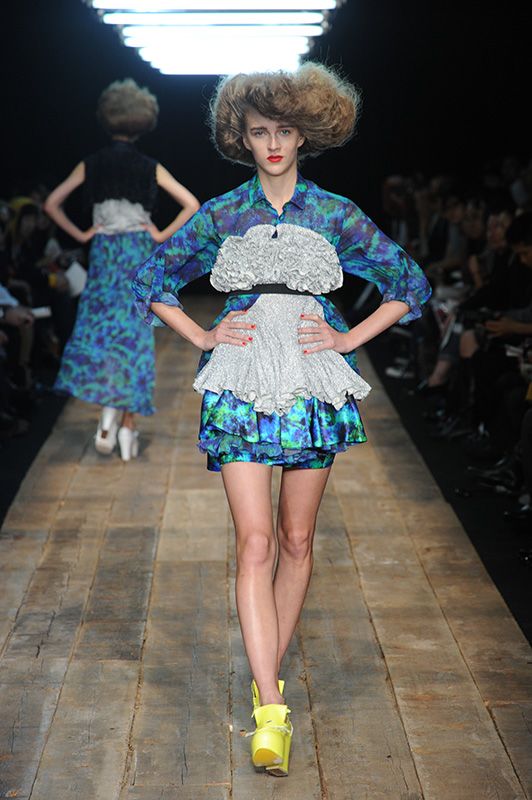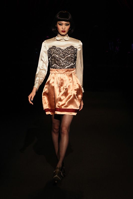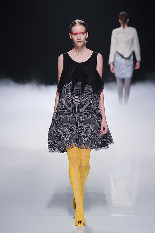 Established in 2007 by the designers Yamagata Yoshikazu and Tamai Kentaro, who met while studying at an art college in London. (Tamai left the brand in 2009.) Building on the idea that fashion design is “a facet of humanity and a way to craft popular trends,” they propose fashion as a communication tool having educational, social, cultural, and environmental perspectives. In 2005 Yamagata graduated from the University of the Arts London Central Saint Martins College of Art and Design with a major in womenswear design. Received awards in three categories at ITS#3, an international fashion competition in Italy aimed at final year students of fashion design schools and young designers. Yamagata launched the brand after working as a design assistant for John Galliano. His 2012 spring/summer collection was presented in a secret show, the content of which was made known only to those who attended. (Photos: 2011 autumn/winter Ultimate Grown-Up Girlie Fashion collection, taken by Chikashi Suzuki [top] and Kanako Sasaki [middle].)