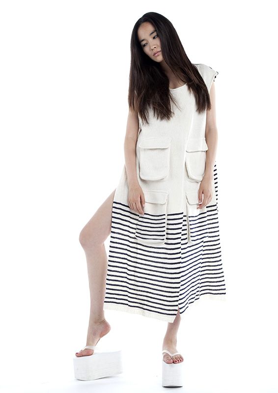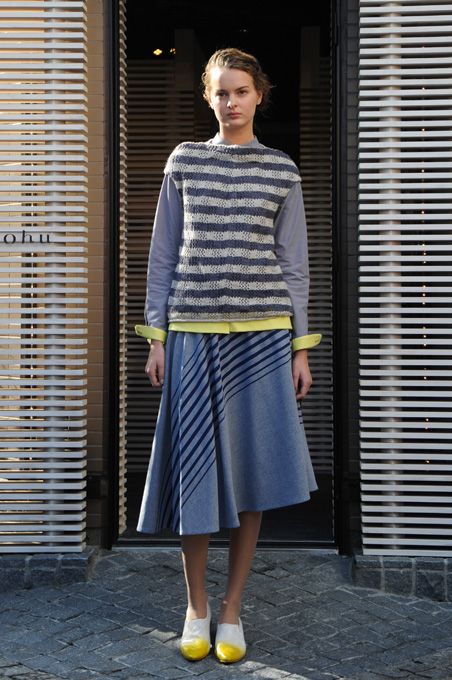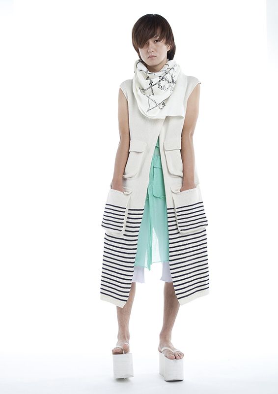 Entered the 2005 Festival International de Mode et de Photographie à Hyères, a gateway to the fashion world for new designers, while still a student at the Royal Academy of Fine Arts in Antwerp. Afterwards he continued training in Antwerp under the mentorship of a designer working with a well-known knitwear brand. Naka started his own brand, Poesie, in 2007 after returning home to Japan. He announced the change to his new brand name, Akira Naka, at the showing of his 2009 spring/summer collection during Tokyo Fashion Week. Something in his knit designs catch the eye, such as his unique gradation knit, which seems to gradually melt into the fabric. The theme of his 2012 spring/summer collection is Vanern. This Scandinavia-inspired collection features unique color combinations and evokes a feeling of fresh airiness.