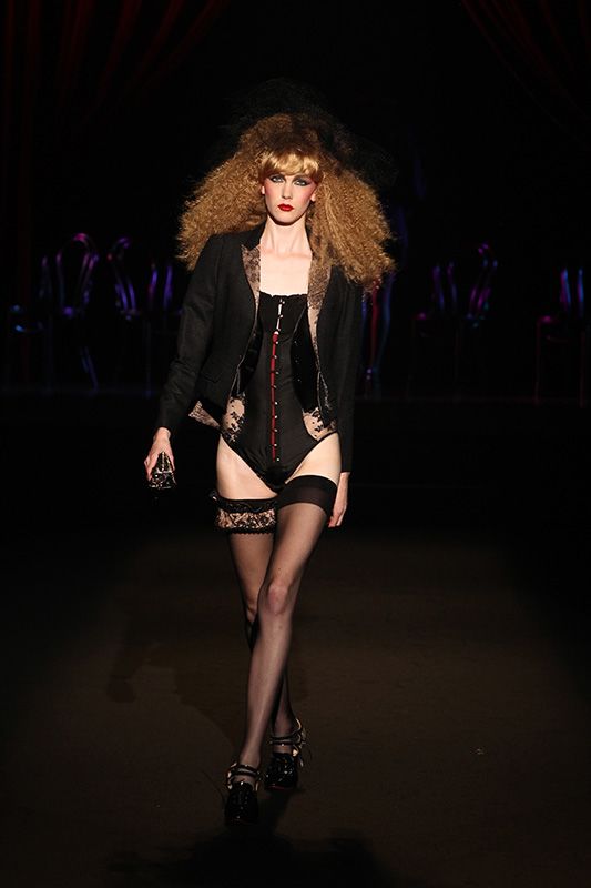 Ono Motonari moved to Europe in 2002, after graduating from Mejiro Fashion & Art College, and continued his studies at the London College of Fashion and the Royal Academy of Fine Arts in Antwerp. He launched his own brand in 2006 after working as chief patterner under Bora Aksu from 2004. In 2010, he was selected as a finalist for the Mango Fashion Awards, one of the top international fashion design competitions. His 2012 spring/summer collection, entitled “Un club de nuit secret,”is inspired by thoughts of a secret nightclub in Paris. The pieces feature lingerie styled details, such as garter belts and corsets, using original lacework and textiles. The use of knit fabrics made in the disaster stricken region of Tōhoku is a gesture of support for Japan to get back on its feet again after the natural disaster in 2011.