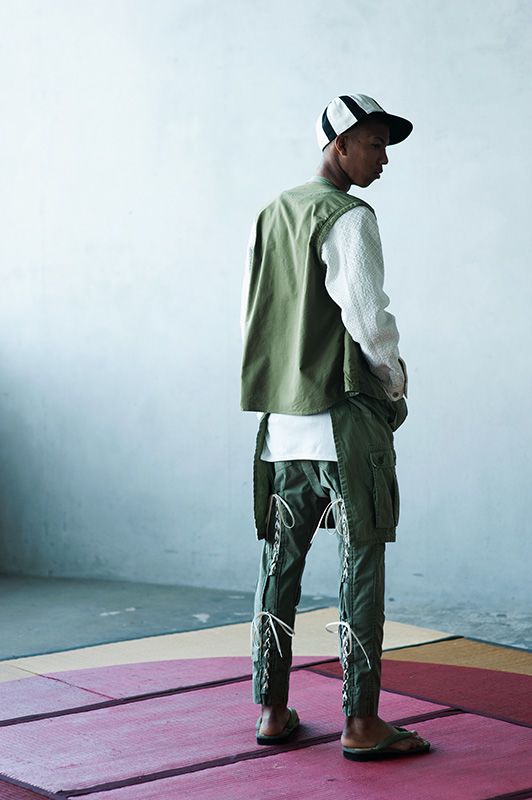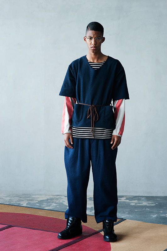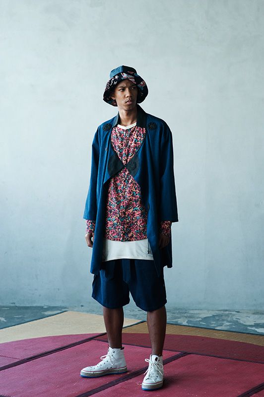 Established in 2003, Sasquatchfabrix is the apparel-making side of the Wonder Worker Guerrilla Band. The brand is engaged in a wide variety of activities, including art exhibitions, in addition to men’s fashion. Their 2012 spring/summer collection, entitled Japonism Sunbeam, incorporates traditional Japanese motifs into Western-style clothing. The designs are known for going beyond typical Japanese techniques or patterning to display the stylishness encompassed by the broader Japanese aesthetic. Following a common thread from their past themes Zenarchy and Modern Ninja, Sasquatchfabrix continues to highlight uniquely Japanese features in their collections—today representing a shout of support for Japan after the March 11, 2011, disaster.