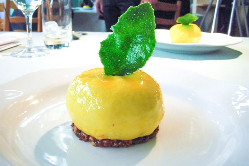 “Yuzu à l’Aube,” a dessert created by Spanish pastry chef Jordi Bordas, winner of the 2011 World Pastry Cup. (Courtesy of Kitagawa-mura)