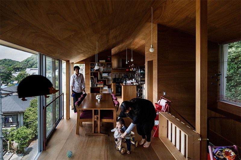 The light and views vary in different parts of the house, and residents can use the rooms for different purposes through the seasons. The upper floor is well insulated, so is like a warm, wooden burrow in winter. Meanwhile, as the first floor is ventilated and cool, it is perfect for summer.
