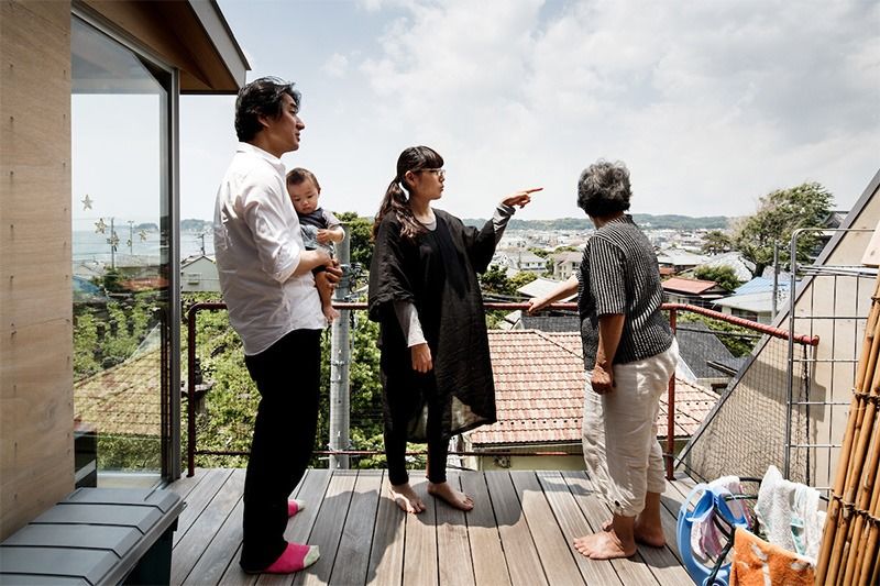 The architect of this house decided to build it on the site of his parents’ residence, which overlooks the sea in the district of Zaimokuza in Kamakura. After his father died, his mother found it difficult to live alone in the home they had shared for so long together. He thought that constructing a new house would allow her to move forward, and decided to move in with his wife and daughter.
