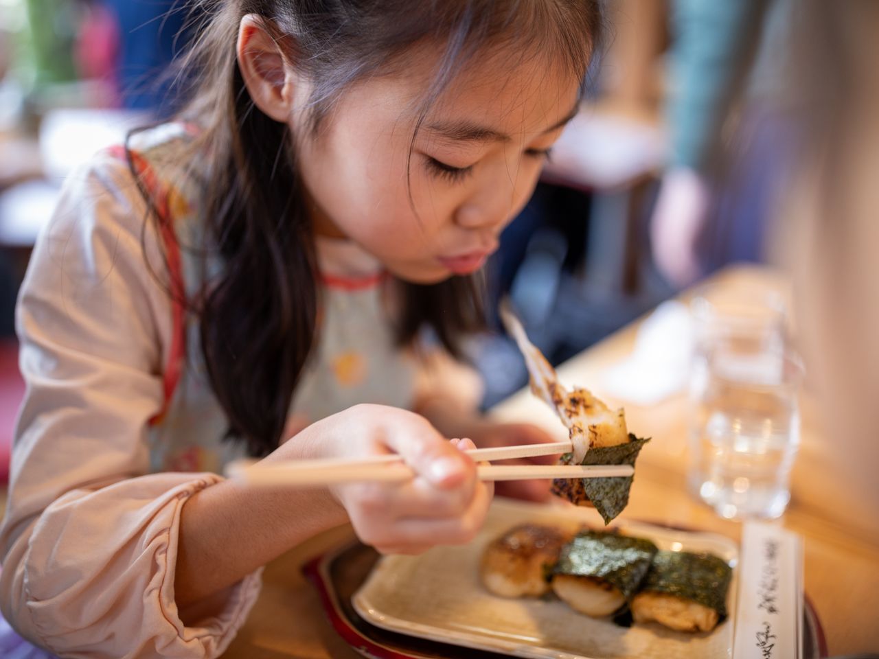 Yamada Shinji: Nos pareció muy innovadora la imagen de una niña disfrutando sinceramente de un plato tradicional como el isobe yaki. Indiferente a la cámara, pone toda su atención en ese dulce glutinoso, y su expresión lo dice todo. La forma en la que la foto captura cómo el mochi se estira desde su boca, junto a la escasa profundidad de campo, otorga a esta imagen una sensación de intimidad.