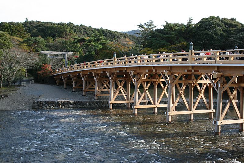 El puente de Uji y la puerta torii del Santuario de Ise.