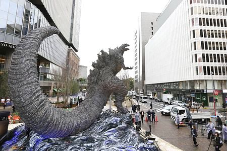 La estatua fue creada a imagen del monstruo que aparece en Shin Godzilla, el filme número 29 de la popular serie de películas, estrenado en 2016.