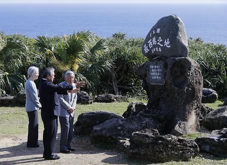 Durante el viaje de un día a Yunaguni, la pareja imperial visitó también el cabo de Irizaki, incluyendo el monumento que señala el extremo más occidental del país.