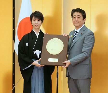 “Tenemos grandes expectativas sobre ti. Me gustaría que continuaras trabajando duro”, dijo el primer ministro Abe Shinzō a Hanyū.