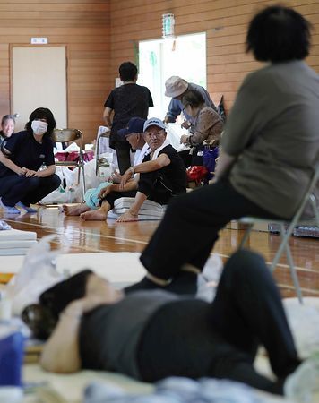 Varias personas descansan en un refugio en la ciudad de Kurashiki.