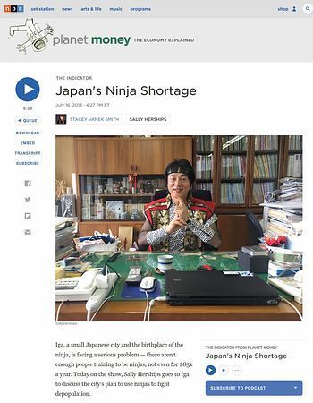 El 16 de julio la cadena estatal National Public Radio emitió un programa titulado “Japan’s Ninja Shortage” (La escasez de ninjas de Japón), dedicado al uso de los ninjas para la promoción del turismo en Iga.