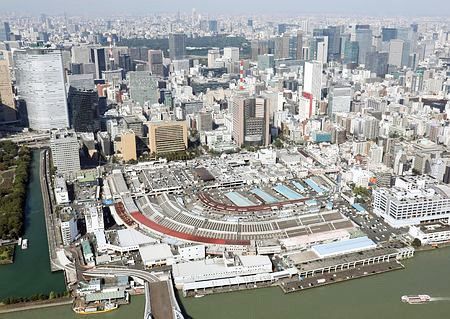 Durante los primeros años del mercado de Tsukiji, las carreteras eran las principales vías para transportar el pescado y el marisco desde el lugar. Las características estructuras en forma de abanico del mercado son un vestigio de esa época.