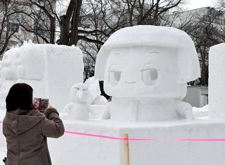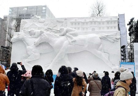En el parque Odōri, el principal escenario de este festival que se celebrará hasta el 11 de febrero, se pueden ver dos esculturas dedicadas a la carrera de caballos.