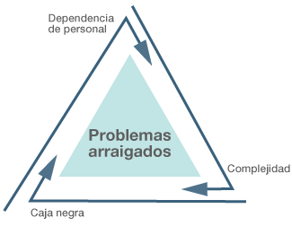 El primer factor es que los sistemas son como una caja negra: no se sabe qué contienen. En el caso de los sistemas más antiguos, a menudo el diseño no está documentado, o bien la documentación existente no coincide con las características del sistema. Esto se debe a que la documentación raramente se actualiza para incluir las mejoras que se van realizando en el sistema. Y es que, aunque las mejoras sean necesarias para el mantenimiento, cada vez que se aplica una mejora hay que analizar el sistema existente, lo que requiere una inversión importante de tiempo.