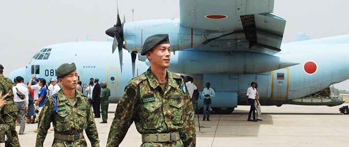 Fotografía del titular: tropas del cuerpo de Tierra de las Fuerzas de Autodefensa de Japón participan en las operaciones de mantenimiento de la paz desarrolladas por la ONU en Sudán del Sur. (Fotografía: cortesía de Jiji Press)diplomacia Japón okinawa Segunda Guerra Mundial comunidad internacional ONU