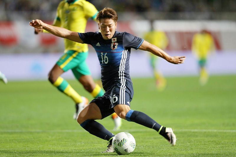 Asano Takuma durante el partido de la Copa Kirin Challenge contra Sudáfrica, el 29 de junio de 2016 (©Jiji Press).