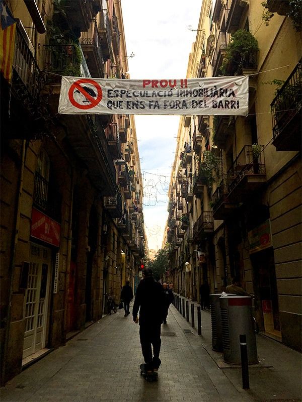 “¡Basta de especulación inmobiliaria, que nos echa del barrio!”, reza un cartel colgado en una calle de la ciudad